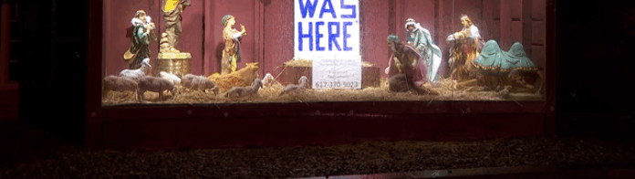 Saint Susanna Parish in Massachusetts is displaying a Nativity scene with an empty manger and a sign that reads, “ICE was here,” along with contact info for a group that monitors local immigration enforcement.