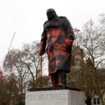 In the early hours of the morning, one of Britain’s most iconic monuments became the center of a dramatic political statement. The statue of...